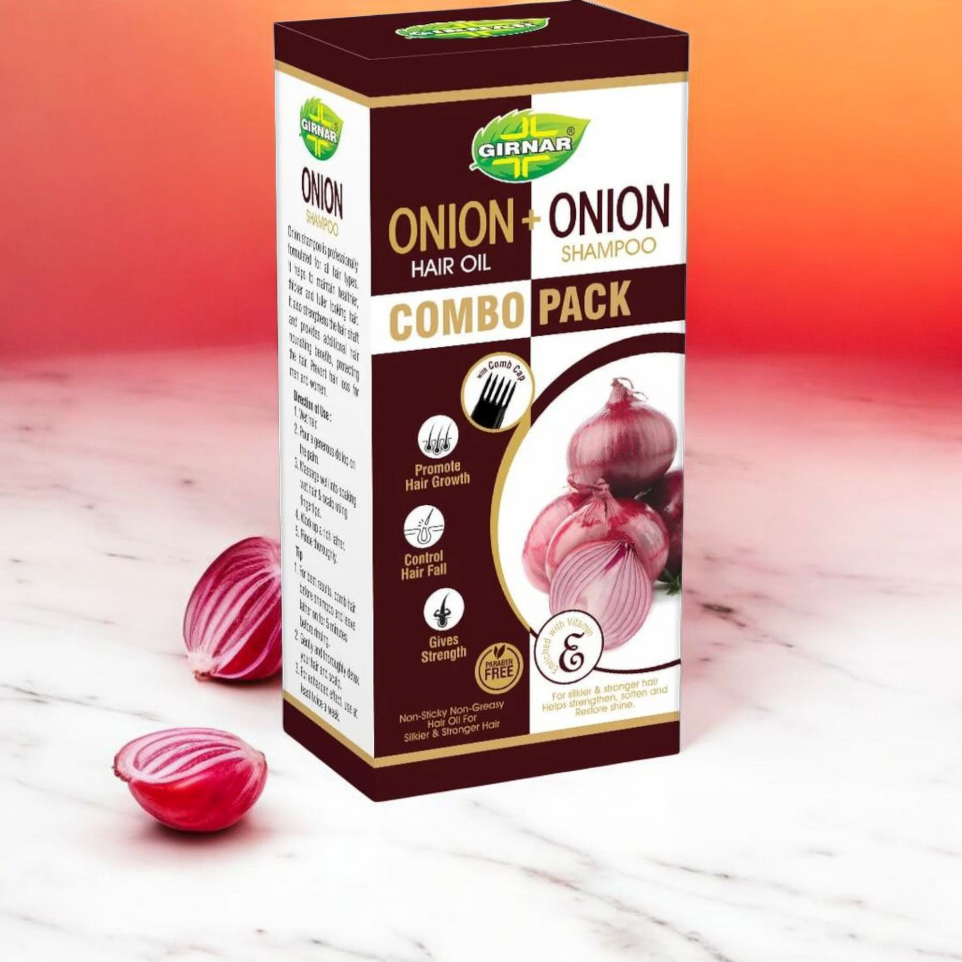 يعزز نمو الشعر: مستخلصات البصل غنية بالكبريت، مما يغذي فروة الرأس ويحفز نمو الشعر الصحي.